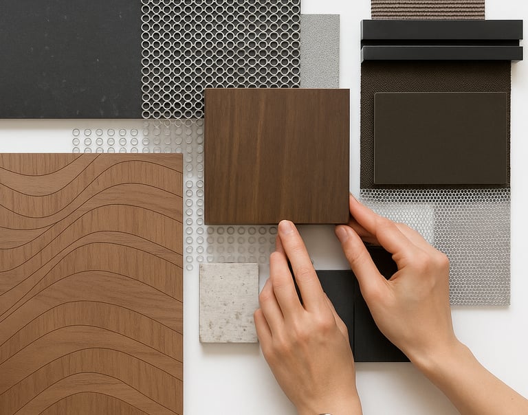A differenza di altri pattern Modular, “Vento Calmo” è realizzato utilizzando una sola essenza lignea: lo stesso legno viene tagliato e riassemblato, intrecciando le venature in direzioni opposte. Questa scelta progettuale nasce dalla volontà di esprimere eleganza attraverso la coerenza visiva. Il risultato è una superficie monocromatica solo in apparenza, ma in realtà piena di sfumature, riflessi e variazioni luminose, che emergono con la luce naturale. Ogni segmento è tagliato con tecnologia laser ad altissima precisione, ma il montaggio è affidato a mani esperte. È in questo incontro tra tecnologia invisibile e sensibilità artigiana che il pattern trova la sua vera anima. Il legno, così trasformato, perde la sua rigidità e si fa morbido, leggero, quasi tessuto.
